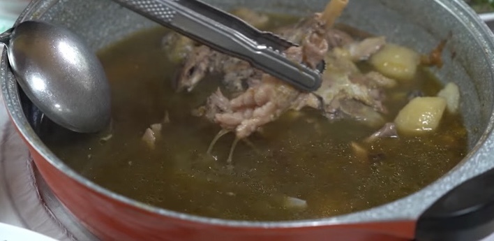 백숙의 국물은 보약 같다고 한다. 약 냄새가 나지는 않고 몸에 좋은 국물의 진한 느낌이라고..능이의 향도 좋다.