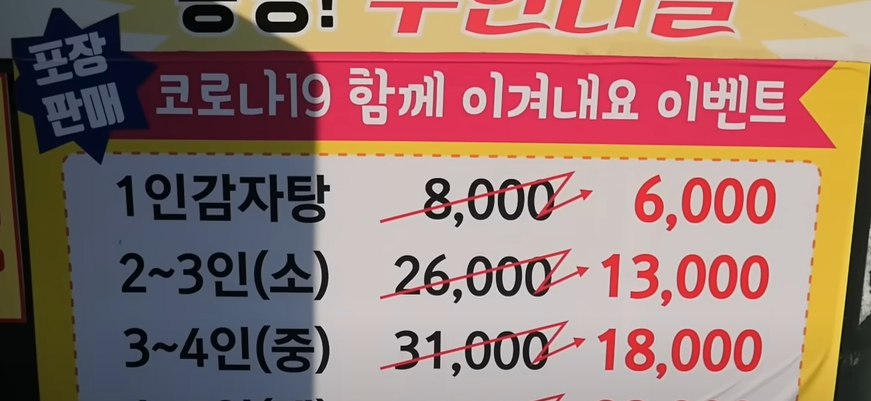 감자탕만 해당되는데 이벤트로 현금 결재 시 할인도 해준다.