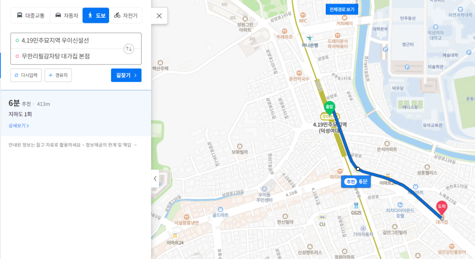 419민주묘지역 1번출구에서 도보로 6분 거리에 있다.