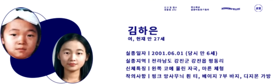 실종일자 : 2001. 6. 1 (당시 만 6세)