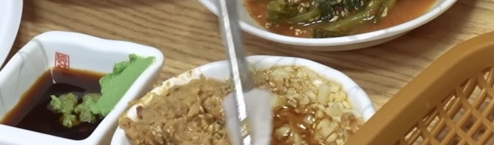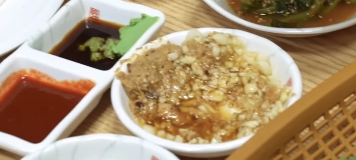 기본으로 나오는 밑반찬들이다. 저 중에서 특히 적색 양파는 눈여겨 봐야한다.