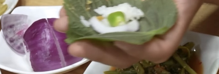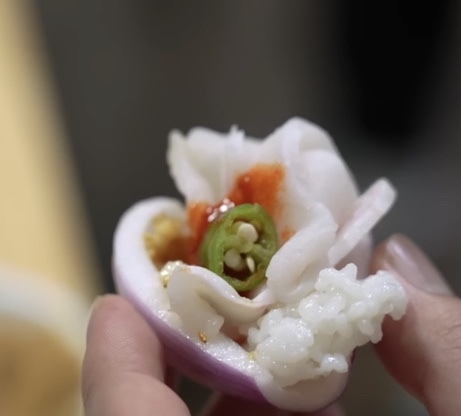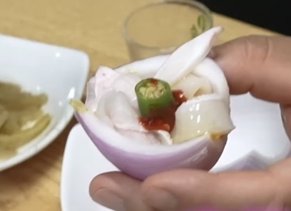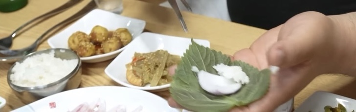 깻잎과 앞서 말씀드린 적색 양파를 놓고