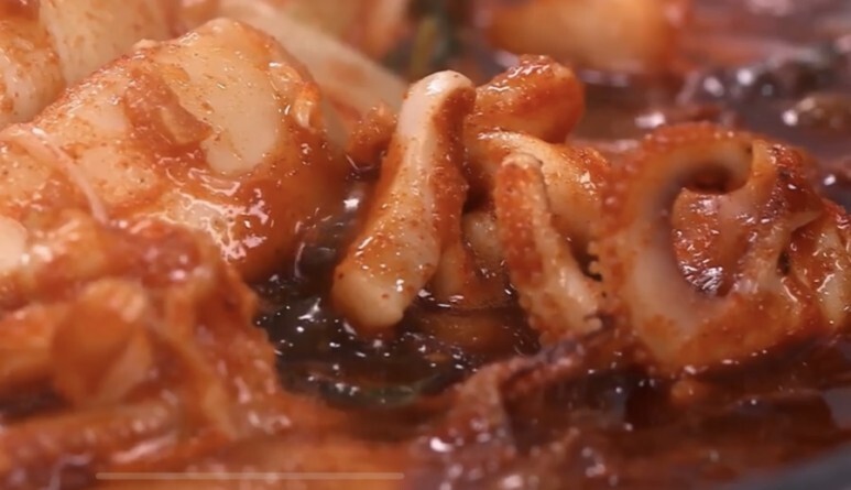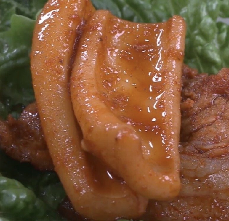 한치의 쫄깃함과 제육의 담백함이 더해져 맛이 더욱 풍부하다.