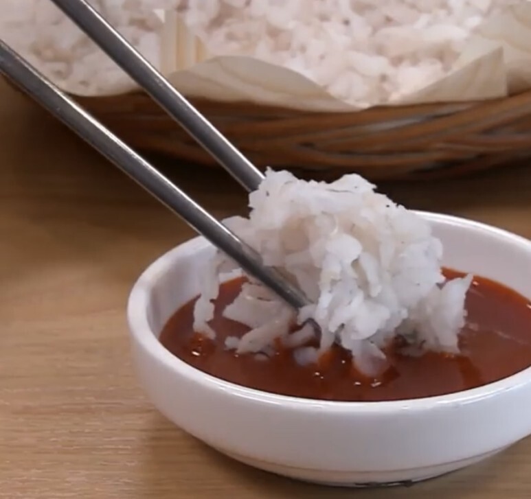 이집만의 특제 초장을 찍어 한입하면 부드럽게 씹히는 맛을 즐길 수 있다.