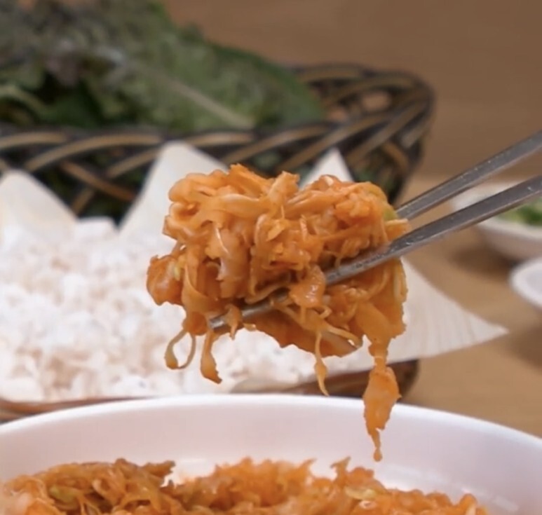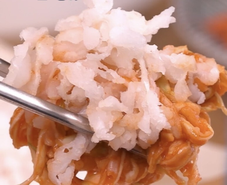 이 붕장어를 맛있게 즐기는 방법은 채 썬 양배추와 콩가루에 숙성 초장을 비벼주면 맛의 끝판왕이 탄생된다.