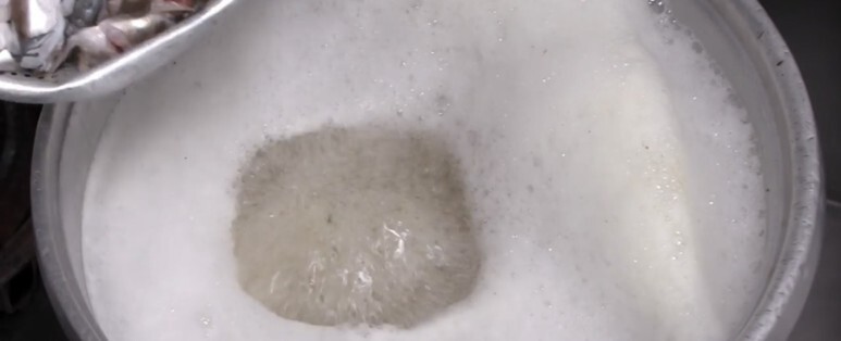 붕장어 머리와 껍집을 넣어 푸욱 고와준다.